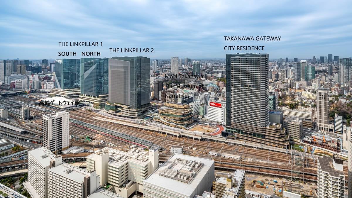 TAKANAWA GATEWAY CITYは、高輪ゲートウェイ駅に直結した4つの街区で構成される巨大な「まち」です。「THE LINKPILLAR 1」「THE LINKPILLAR 2」「MoN Takanawa: The Museum of Narratives」「TAKANAWA GATEWAY CITY RESIDENCE」4つのエリアで構成されています。