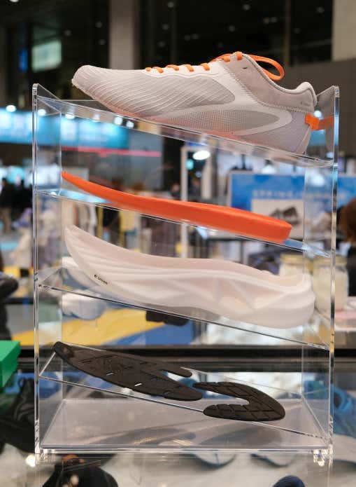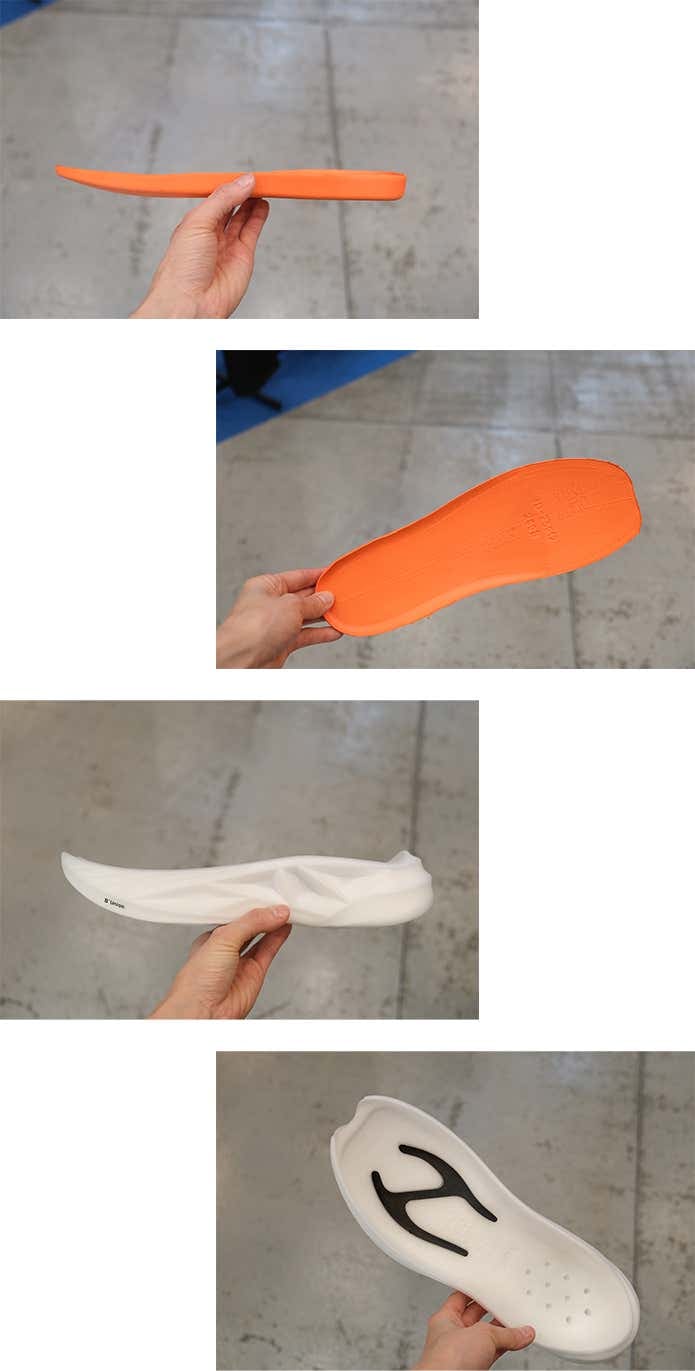分子レベルから設計された二重構造により、着地時の衝撃をやわらかく受け止める「タフ層(オレンジ)」と、蹴り出しを力強くサポートする「ソフト層(ホワイト)」を組み合わせ、驚異的な反発力を生み出します。