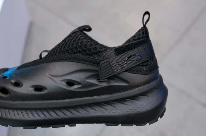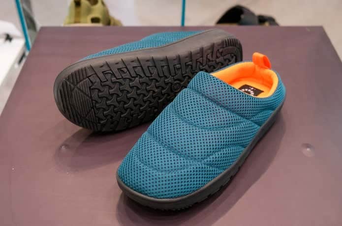 厚めのクッションを内蔵したサボシューズ。地面からの突き上げを感じにくく、アウトドアシーンにぴったり。