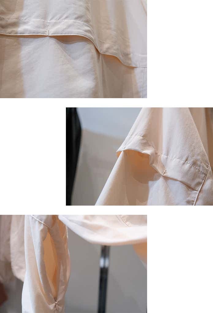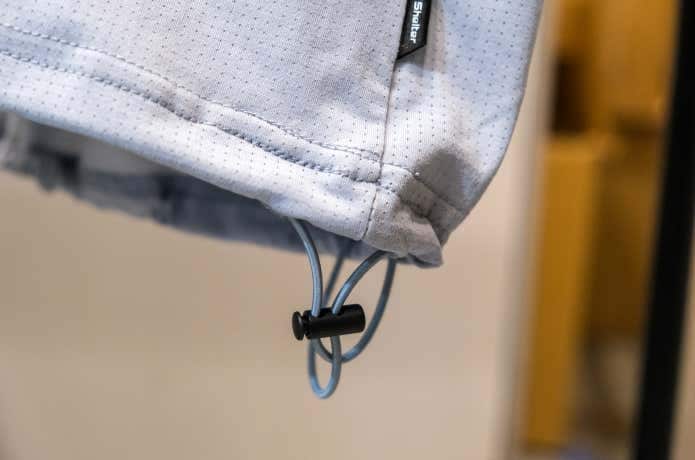 よく見ると暑熱βの特殊なDOT構造で表情豊か。ドローコードで裾を絞り、シルエットに変化をつけて楽しめます。