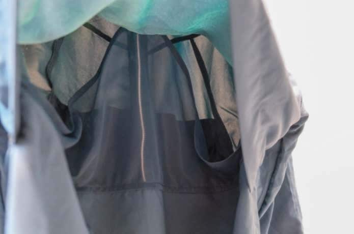 着てみたところ、ドットショットの穴から前方が見えるようにはなっているのですが、はっきりとは見えないので、このまま行動するのは難しい印象でした。強い日差しのもとでの停滞中にはいいですね!
