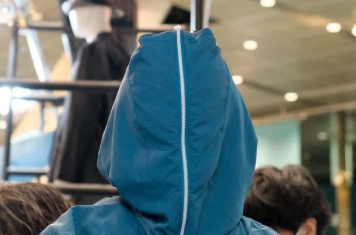 “不審者パーカー”と呼ばれ、昨年SNSで大ヒットしたこちら。ジップを上まで閉めると完全に顔を隠せるうえに、フードのひさしも大きく、まるでハットをかぶっているかのよう。