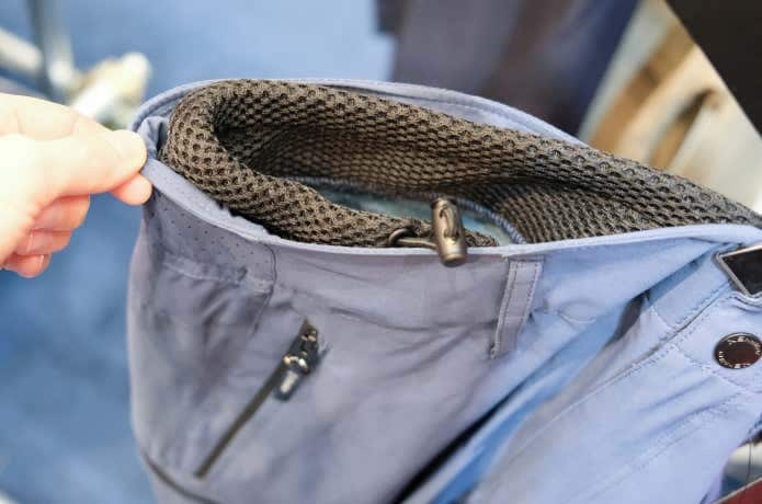 背面にもベンチレーションを装備。内側から見ると、背中に大きな通気口があることがわかります。