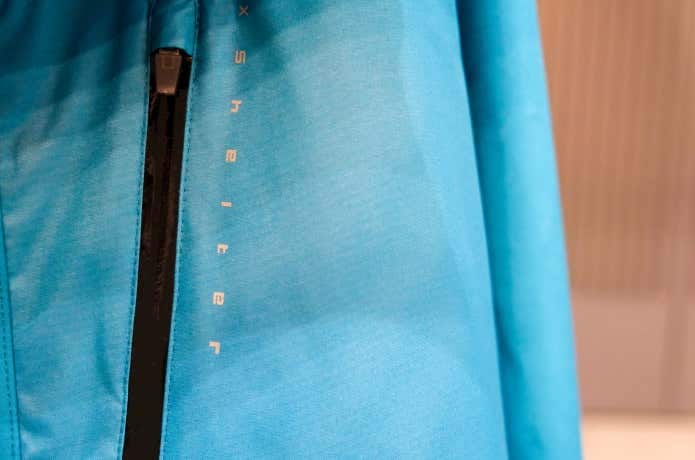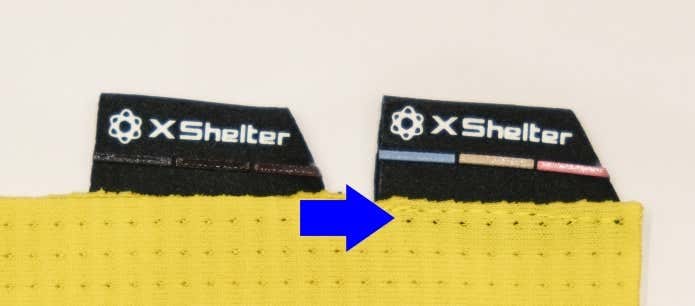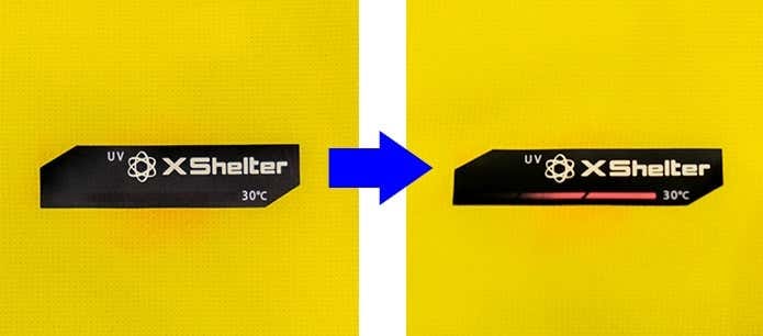 エックスシェルター製品は、ジップやロゴプリントが紫外線チェッカーの役割も果たしてくれます。紫外線量に応じて、色が変わるようになっているんです。