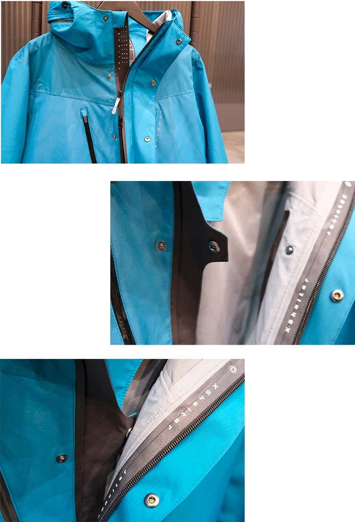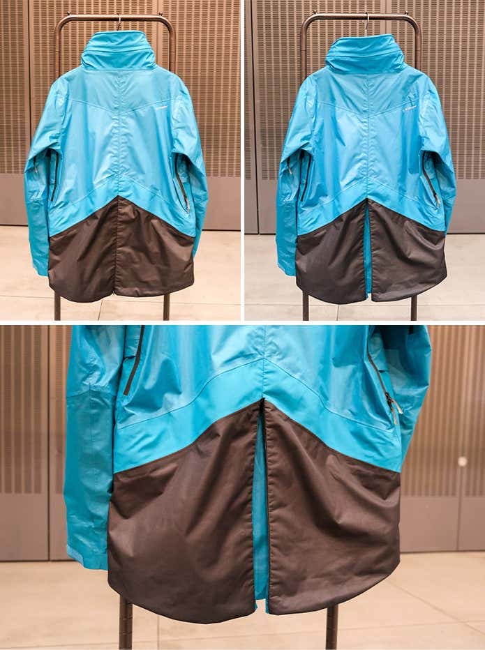 オーシャンモデルについてはフードを改良。フード先に溝を設けることで雨滴をサイドに流し、顔への侵入を軽減する仕様にアップデートしています。