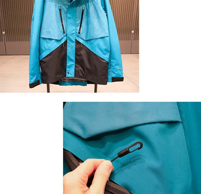 さらに、あごにファスナーが当たりにくいチンガードや、襟裏のループなど、細かな使い勝手にも配慮されています。