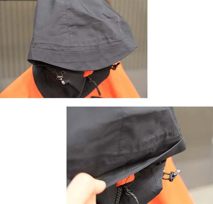 目元以外をしっかり覆うフェイスガードと、ツバ付きの帽子型フードを組み合わせることで、顔まわりまでしっかりガードできる設計。ドローコードでフードのフィット感を調節できます。首の後ろから髪を出せる仕様のため、ロングヘアでも安心。