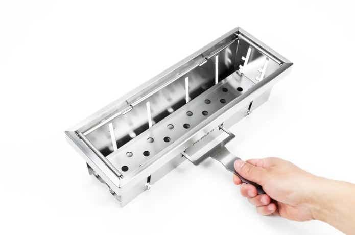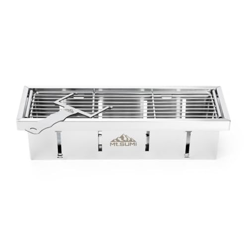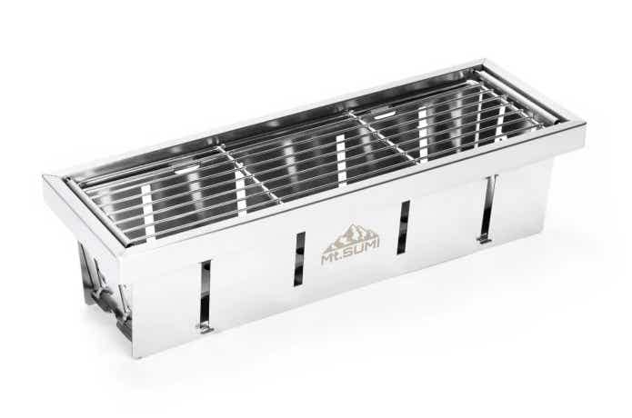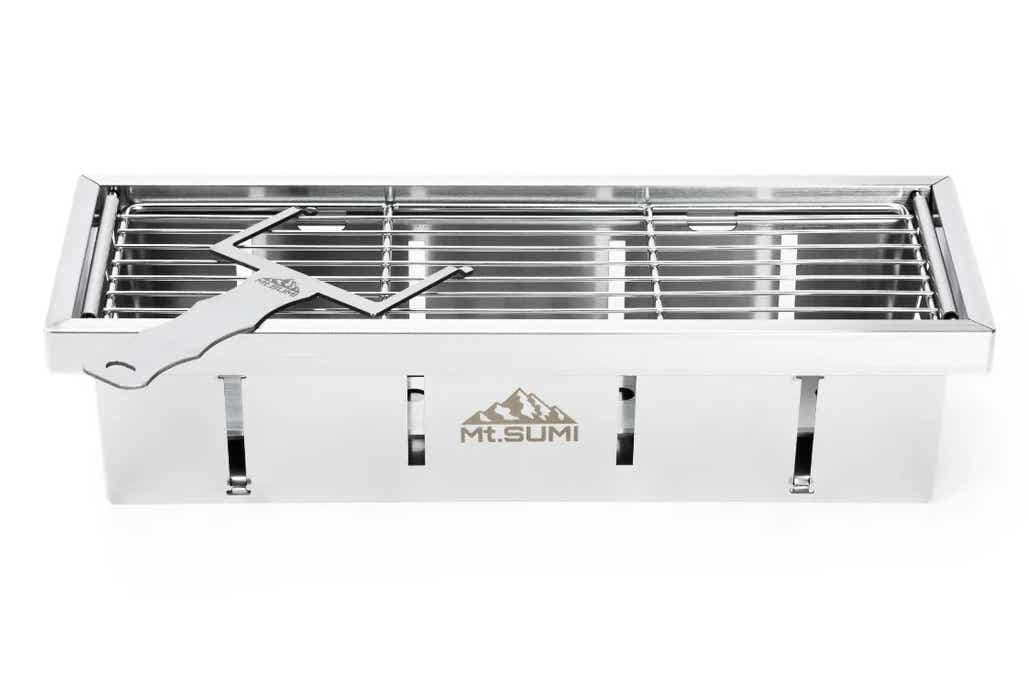 強火で一気に焼きたいとき、弱火でじっくり火を入れたいとき、炭が減ってきた終盤まで対応できるのがMt.SUMI(マウントスミ)の「パーフェクトグリル ハーフユニット サンマ」。