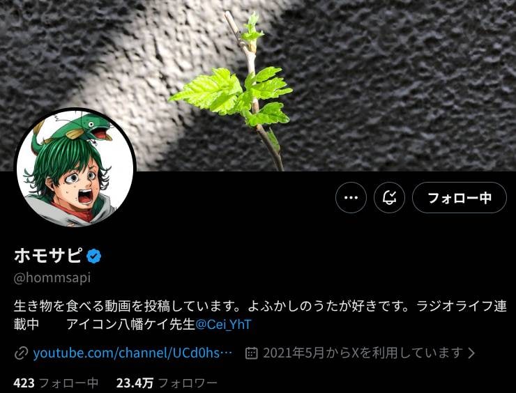 3月30日、生き物系YouTuberの「ホモサピ」(登録者数220万人)がXに投稿した「うんこを食った」という報告の投稿が大きな反響を呼んでいます。