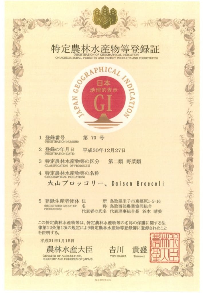 ブロッコリーが指定野菜に 日本唯一のGI登録は「大山ブロッコリー」