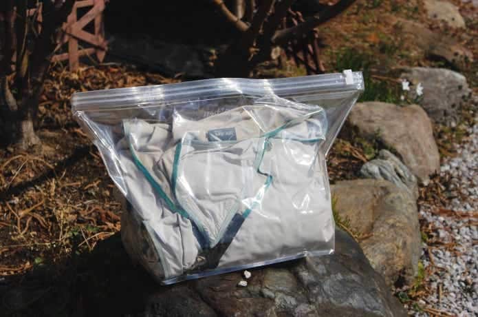 冒頭で見せたようなシームテープの加水分解を遠ざけるためにも、オフシーズンはドライストレージバッグに入れて、しっかり保管したいものです。