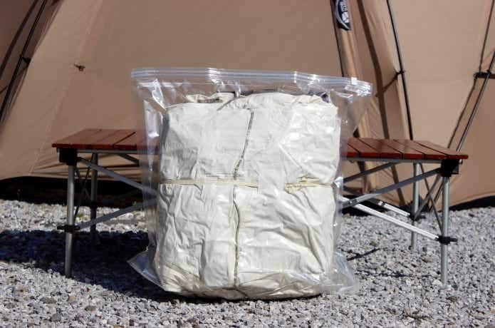 カビが発生しやすいコットン系の幕ものにも、ドライストレージバッグとの相性は◎。