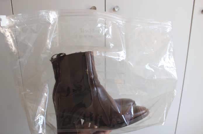 このとき、汚れを落とし、乾燥させた状態で入れるのがポイントです。湿気から保護するための保管用バッグなので、濡れた状態の製品を乾かすことはできないのでご留意を。