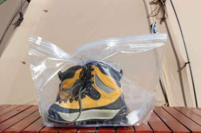 もちろん、アウトドア製品以外を入れてもOKです。たとえば革靴。湿気に弱くデリケートな素材なので、そういったアイテムの保管にもよさそうですよ。