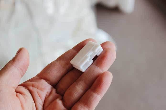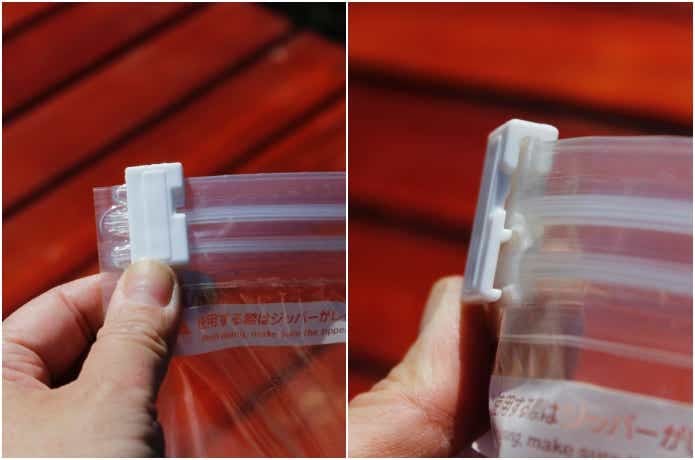 袋の口を閉じるときに使う、この白いパーツ。取り外し式なんですが……筆者、さっそくひとつ行方不明に。あると断然便利なので、外したときはなくさないようご注意を。