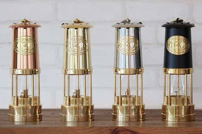 炭鉱で使うために開発されたマイナーズランタンというタイプで、今でもウェールズの工場で丁寧に作られています。真鍮製で使い込むほどに味わいを増す点も魅力です。