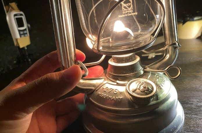 オイルランタンは火器です。つけたままにしておいて倒れたら、火災の危険があります。また、テント内で火をつけたままにすると一酸化炭素中毒の危険もあります。オイルランタンは寝る前に必ず消すようにしましょう。