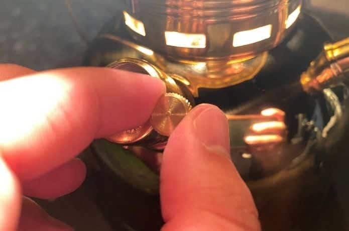 非加圧式の場合は、芯を下げることで消火を行います。芯の下げ方は、ツマミを反時計回りにひねるだけ。
