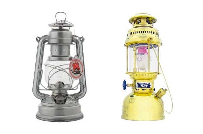 両者の代表的な製品としては、非加圧式はデイツ「D78」やフュアーハンド「ベイビースペシャル276」などの「ハリケーンランタン」といわれるモデル、加圧式はペトロマックス「HK500」が挙げられます。