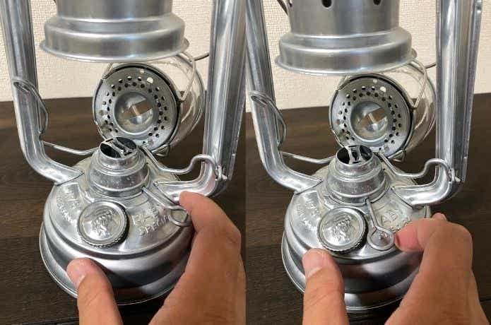 点け方がわかったところで、オイルランタンの消し方も紹介します。点け方と同じく、消し方も非加圧式と加圧式で異なります。