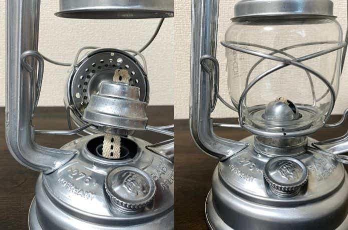 非加圧式のオイルランタンは、使っていくにつれて芯が燃えていくため、短くなったら交換する必要があります。芯を交換する手順は簡単なので、「ベイビースペシャル276」を使って解説します。