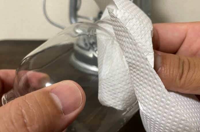 布やキッチンペーパーなどでホヤの内部を拭き取ります。ホヤの煤掃除は基本的にこれだけ。