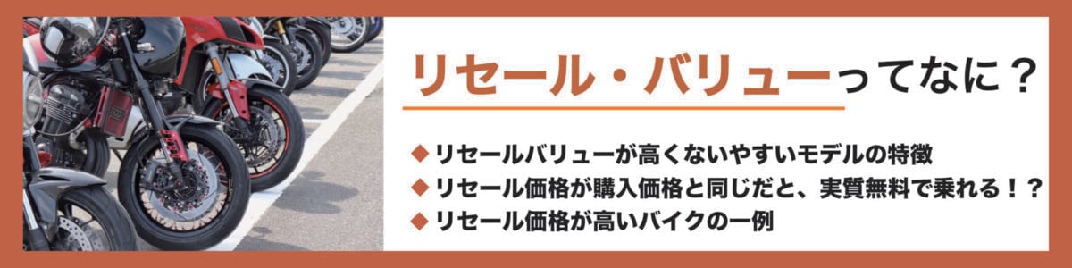本記事では新車購入の際のポイントとして知っておけば、お得に(場合によっては実質無料で)バイクに乗ることができる「リセールバリュー」について解説します。