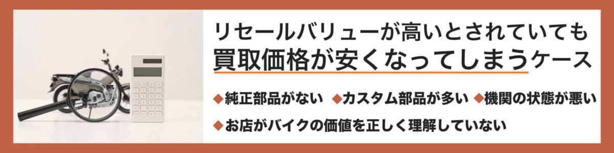 リセールバリューが高いとされるバイクでも、買取価格が安くなってしまうケース