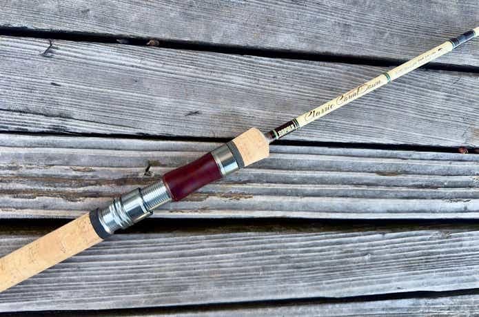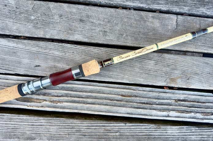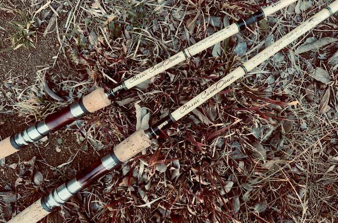 木製風のリールシート+コルクグリップでクラシカルなルックスは、オールド好きな方には刺さるデザインですよね。
