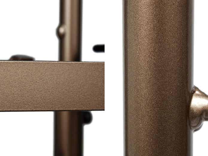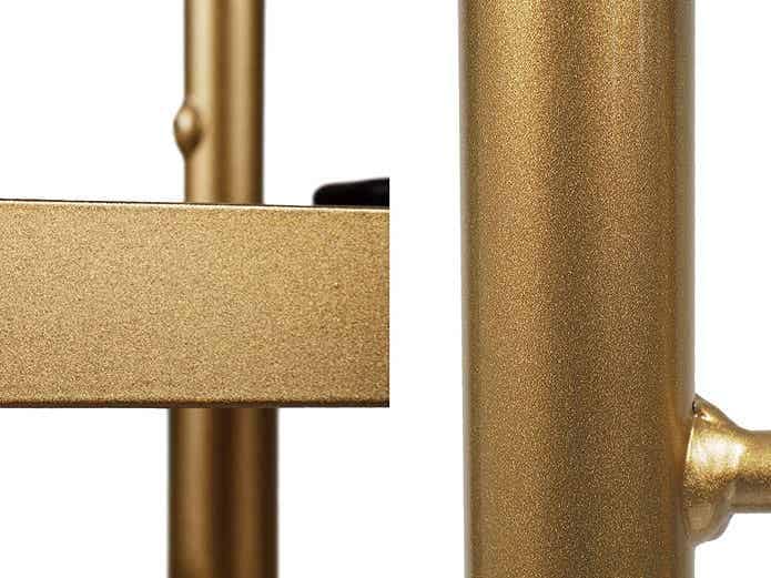 ゴールド・ブロンズともに、美しい質感を実現するための仕上げにより、金属や硬い素材が触れると表面に傷がつく場合があります。組み立てや高さ調整の際は、パーツ同士の接触に注意して丁寧に扱いましょう。光の当たり方で表情が変わる美しさは、この仕上げならではの魅力です。