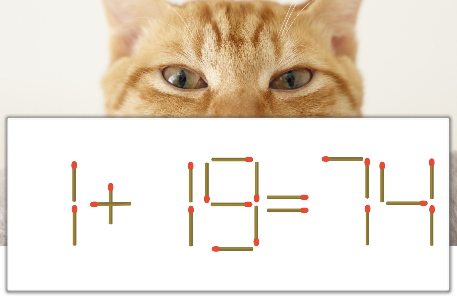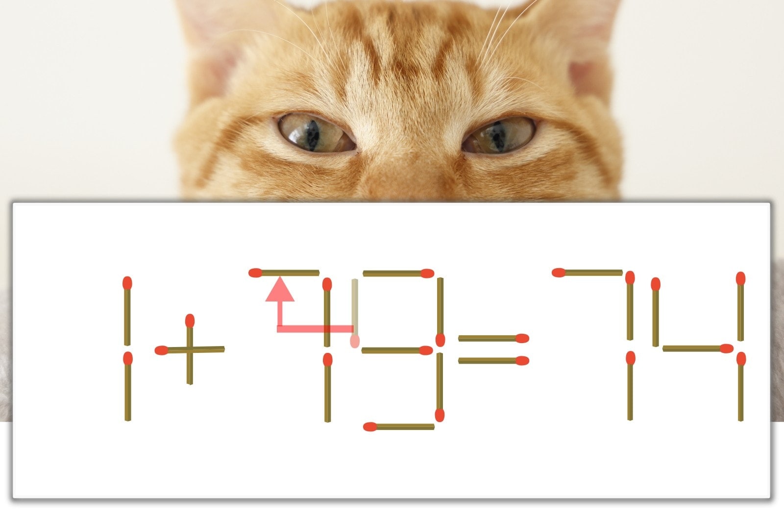 「9」を別の数字に変化させると答えが導き出せます。「9」のマッチ棒を1本移動して、「1」を「7」にしてみましょう。すると、「1+73=74」が成立します。