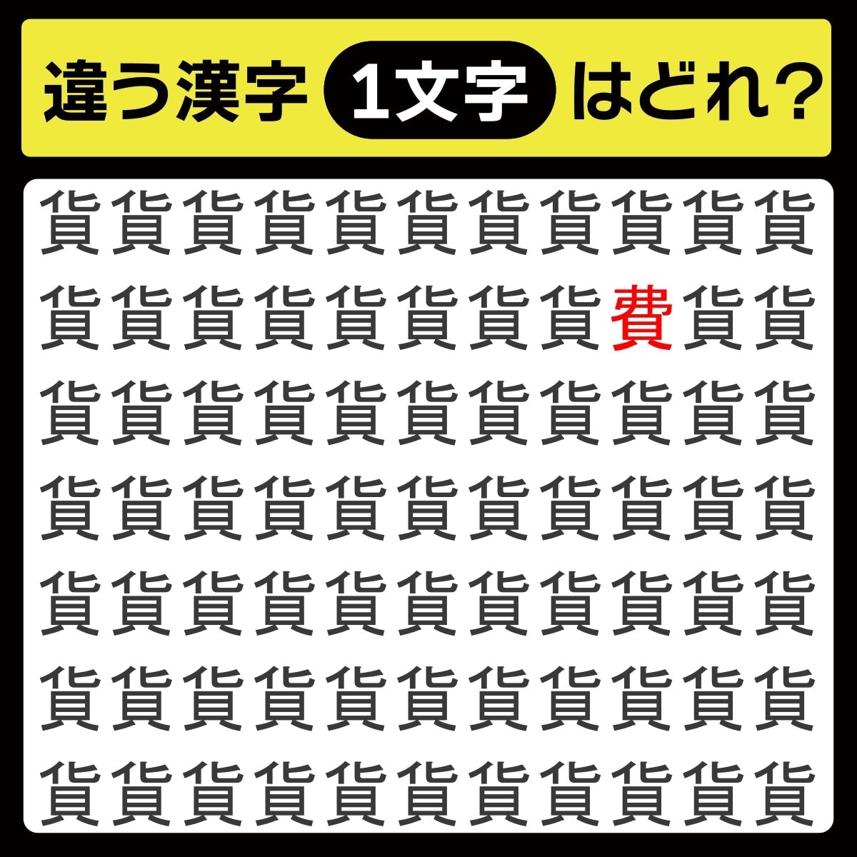 違う漢字は、上から2行目、右から3番目の文字でした!