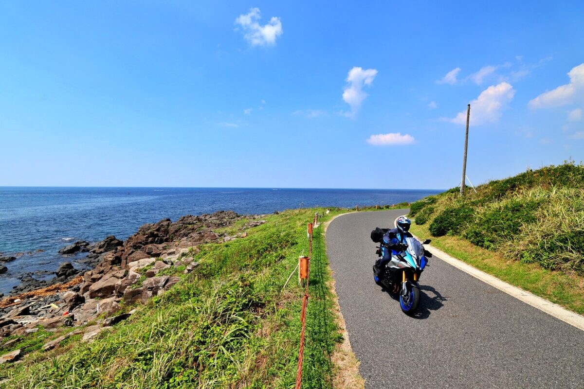 そして、鮮やかなメタリックブルーが配置されたカラーリングは、表紙撮影で訪れた「角島」や「秋吉台カルストロード」の素敵な海の青、草原の緑にしっかりとマッチして、満足させてくれました。