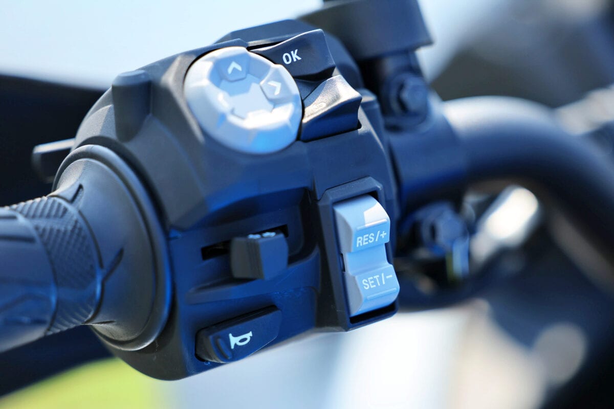 サスペンションは電子制御のため、一人乗り、二人乗り、一人+荷物などにあわせて、ハンドルスイッチで簡単に変更が可能。トラクションコントロールも7段階に調整できたので、雨の日などにはとくに重宝しそうでした。