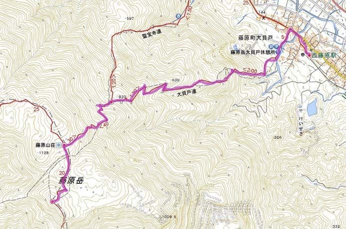 西藤原駅(160分)→藤原山荘(20分)→藤原岳
