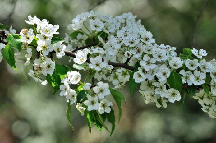 4月の多度山にはマメナシが白く可憐な花を咲かせます。マメナシは、別名イヌナシとも呼ばれる絶滅危惧種に指定されている希少な樹木なので、春には鑑賞しておきたいポイントです。