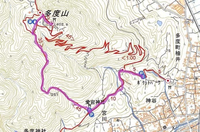 ポケットパーク駐車場(15分)→愛宕神社(50分)→多度山山頂