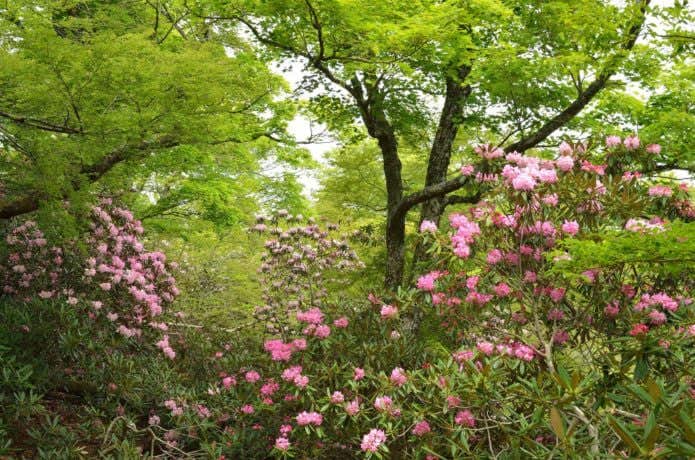 春の天城山は、天城山の固有種「アマギツツジ」やサラサドウダンなどを見ることができますが、特に人気なのが万三郎岳の「シャクナゲ」の群生。毎年5月中旬から6月初めがピークで、多くのハイカーが美しいシャクナゲをお目当てに訪れます。