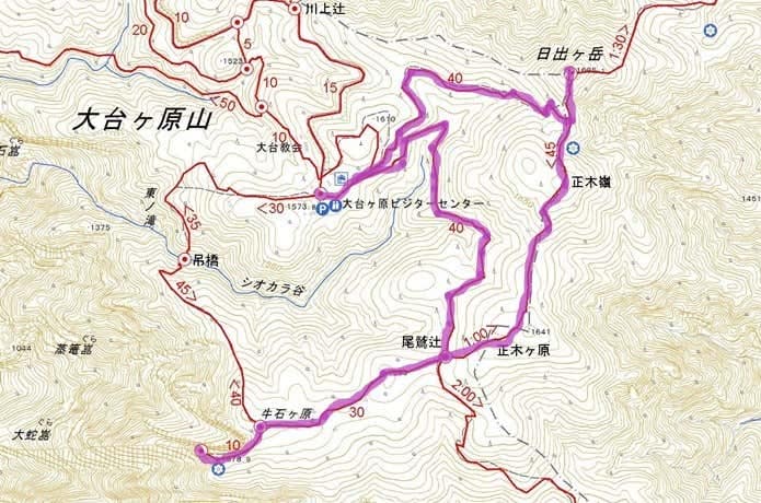 大台ヶ原ビジターセンターから出発し、大台ヶ原山の主峰「日出ヶ岳(ひでがたけ)」へ登頂。正木原の林を歩き、絶景を望むスリリングな大蛇嵓を巡る充実した内容のコースです。