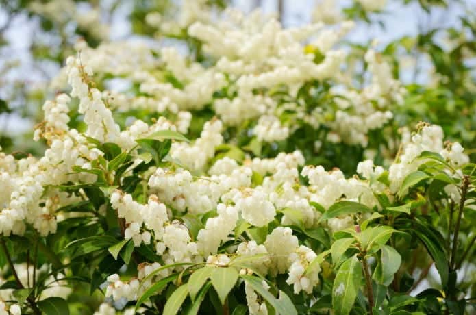 八丁平の笹原や、初夏のヤシオツツジが有名な三峰山ですが、春はアセビの群落が見事。群生地ではアセビのトンネルをくぐって歩くことも。そのほか、ニリンソウやミドリハコベなどのかわいい山野草、コバノミツバツツジがピンク色の彩を添えます。