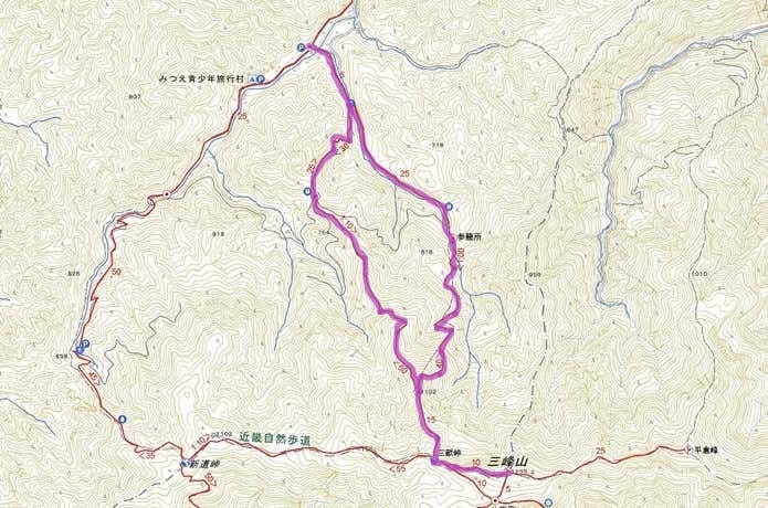 登山口(2時間30分)→三畝峠(15分)→三峰山(10分)→三畝峠(1時間30分)→登山口