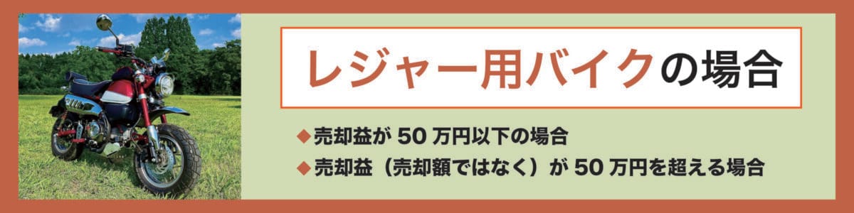 バイクを売却した際の売却益が50万円以下の場合については、制度上で所得税が生じない特例措置が適用されます。