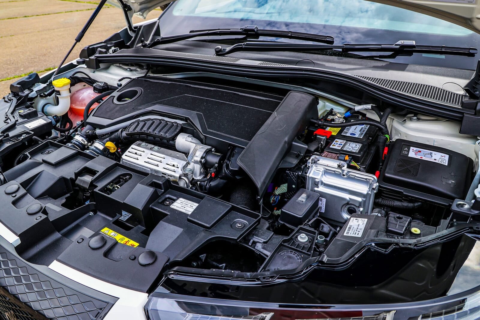 ダッシュボードに置かれたスペックシートを改めて確認してみる。心臓部に収まるのは、直列3気筒DOHCターボチャージャーエンジン。総排気量はわずか1199ccだ。これに、フロントに搭載された16kW(約21PS) / 51Nmを発生する交流同期電動機(モーター)を組み合わせた、48Vのマイルドハイブリッド(MHEV)システムである。最高出力はエンジン単体で100kW(136PS相当)、最大トルクは230Nm。トランスミッションは電子制御式6速デュアルクラッチ(DCT)が担う。