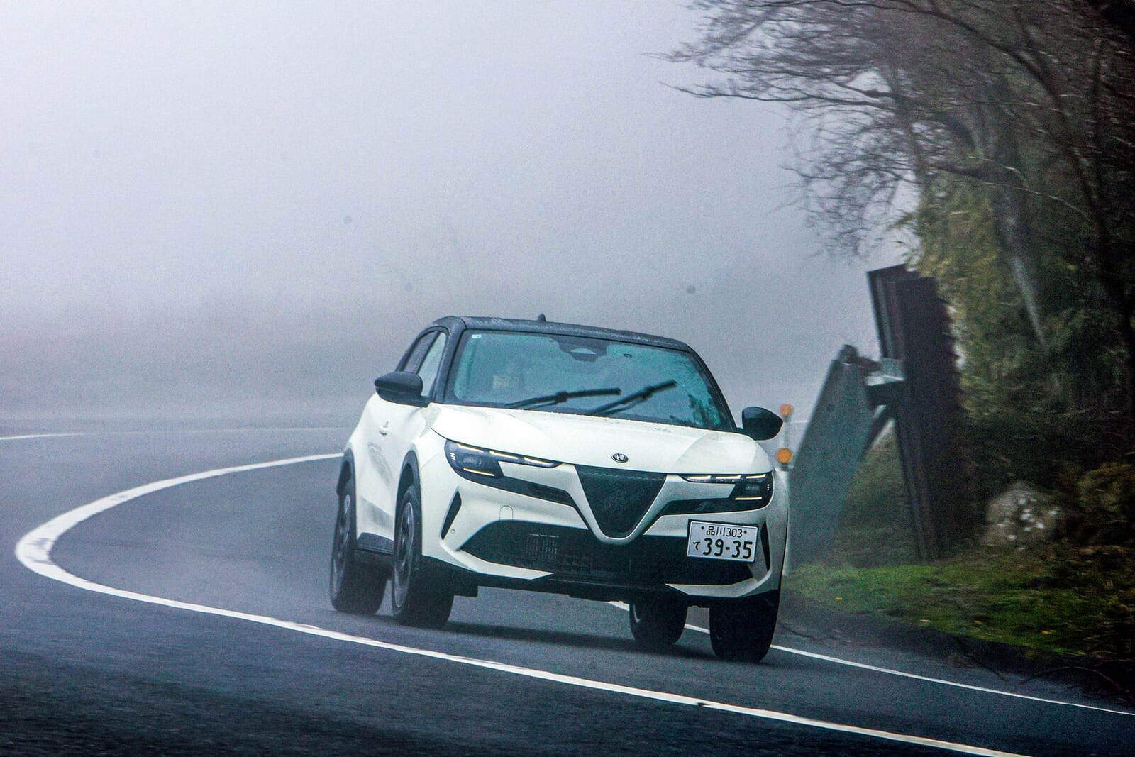 濃霧が這うターンパイク箱根の頂上、車好きたちの聖地「バイカーズパラダイス」。冷たい風が吹き抜ける駐車場で、我々を待ち受けていたのは、全国でわずか120台のみが販売されるという日本企画の限定車「アルファ ロメオ ジュニア Ibrida Edizione Bianco(イブリダ エディツィオーネ ビアンコ)」だった。