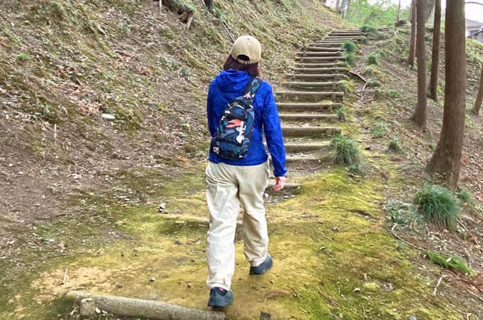 軽めの上着もまとめて入るので、街歩きや旅行はもちろん、ライトなハイキングでも頼れる容量です。登山道に入る場合は、さらにレインウェアやヘッドライト、救急セットなど、ハイキングの必携アイテムも追加収納できます。