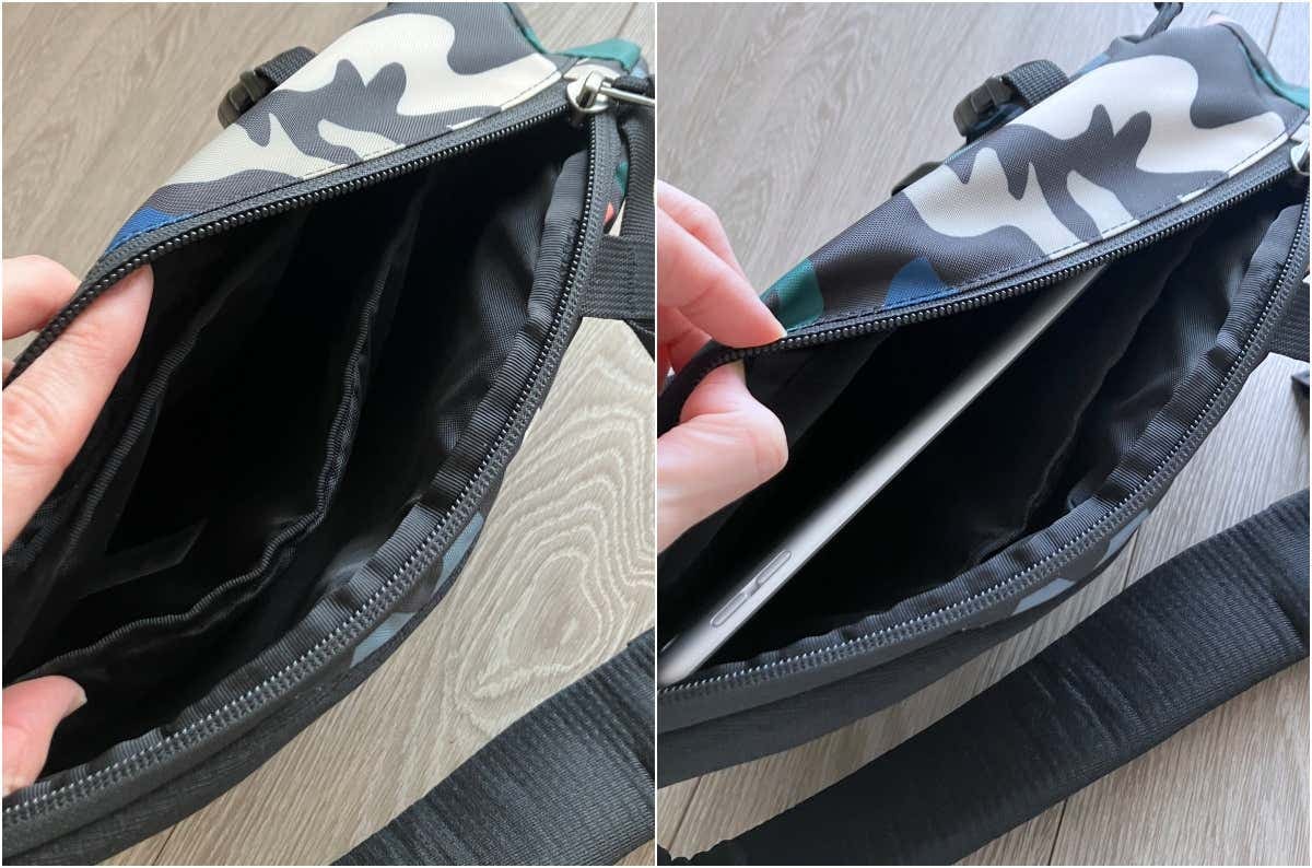 メインコンパートメントは、10インチ程度のタブレットなら無理なく収まるサイズ感。コンパクトな見た目ながら収納力があります。