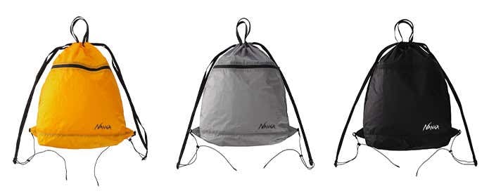 無駄を削ぎ落としたシンプルなナップサック。パッカブル仕様で携行性が高く、使わないときはコンパクトに収納できます。