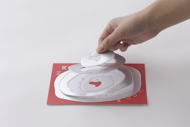 「蛇が脱皮する年賀状」は、「会社として一回り大きく脱皮すること」をテーマにした蛇の皮を実際にベリベリと剝がせる年賀状。剝がした皮(抜け殻)は1本の長いひも状になり、裏面には遊び心のある「回文メッセージ」を記載されている。