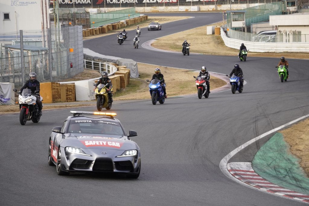 「サーキットは怖いという印象を持つ方も多いかもしれませんが、実際は、初心者は10時から10時半、中級者は10時半から11時といったように、レベル別に初心者と経験者の走行枠が明確に分かれているため、安心して走ることができます。他にも、救護体制が整っていたり、黄旗で転倒をすぐに知らせたりと、安全面は十分に確保されています。