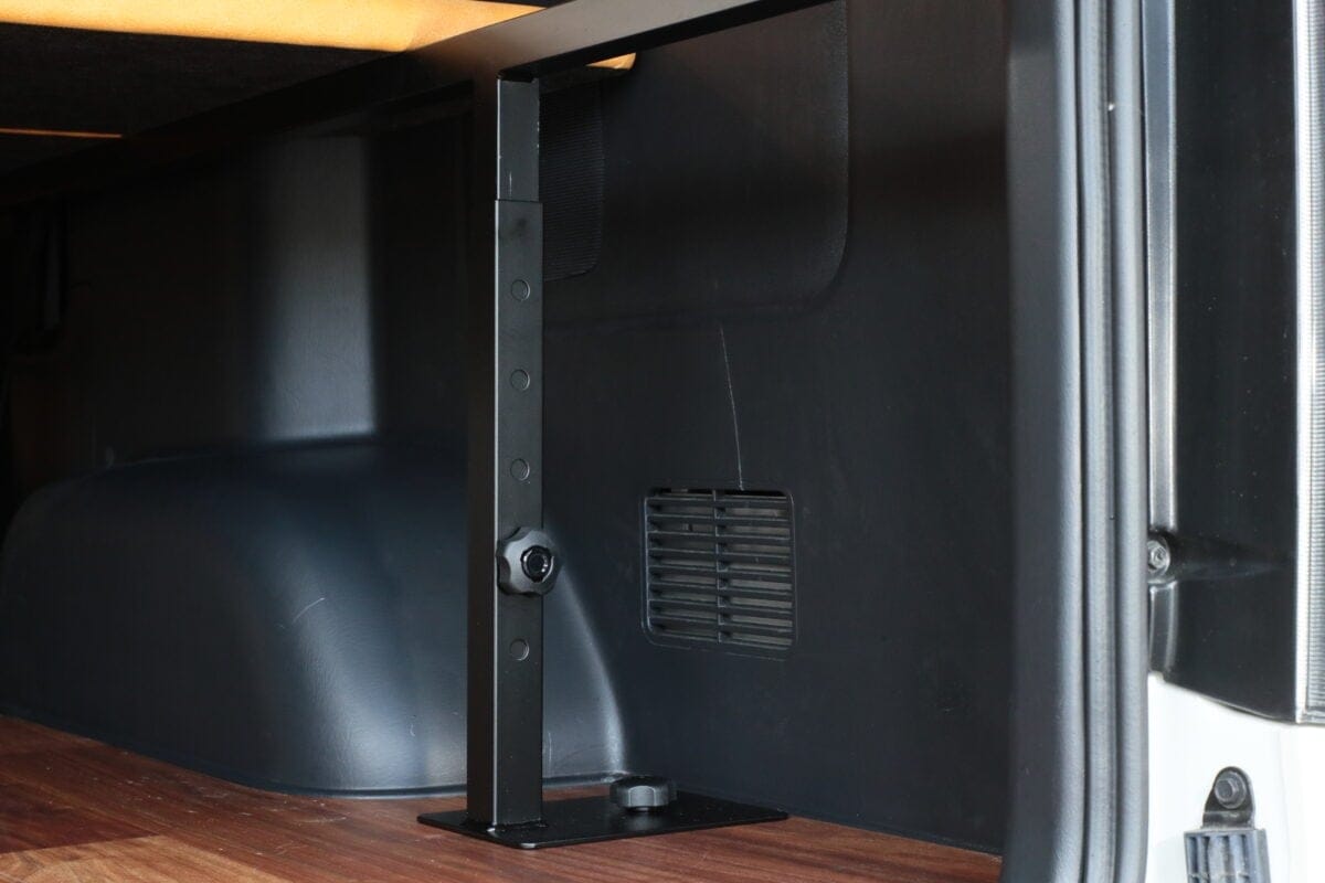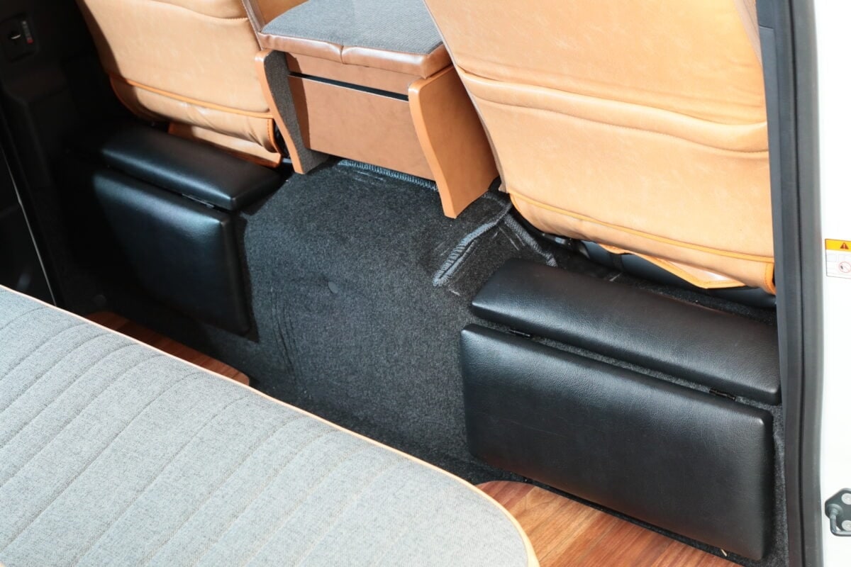加工不要のボルトオンで装着できるスチール製フレームのうえに、4枚のベッドマットを敷き詰める構造を採用。ベッドマットはリアヒーターの出っ張りをはじめ、シートベルトの機能を損なわない設計となっている。